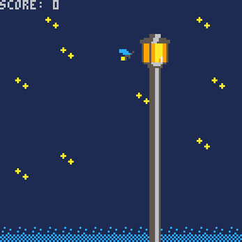 A test at making a Pico8 game. Just your casual flappybird but instead of a bird you get a firefly trying to avoid street light.